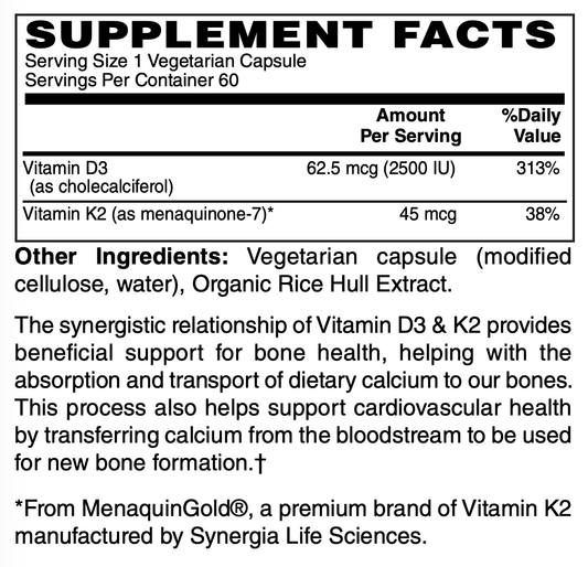 D3 2500 iu plus K2 45mcg, 60 vcap