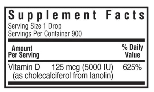 Liquid Vitamin D3 Drops 125 mcg (5000 IU), 1 fl oz