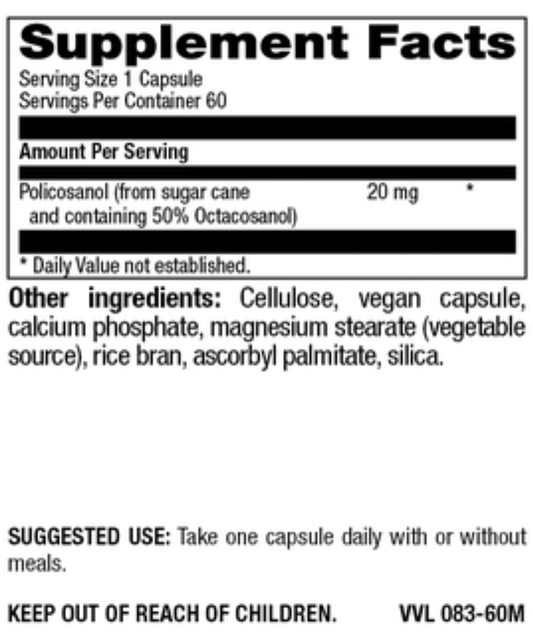 Policosanol 20 mg Extra Strength, 60 vcap (item 083)