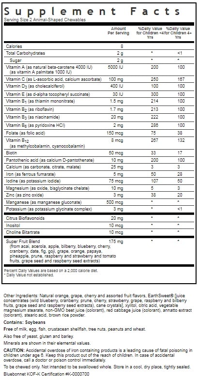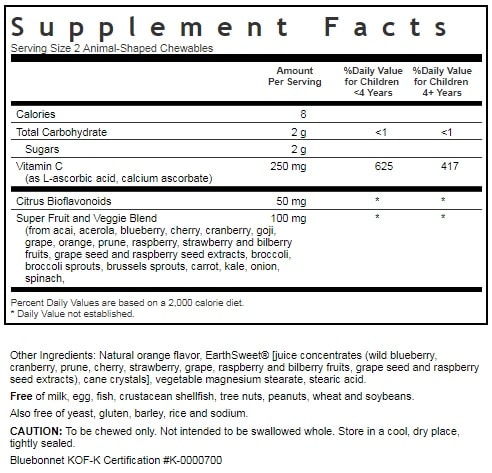 SUPER EARTH RAINFOREST ANIMALZ VITAMIN C ANIMAL-SHAPED, 90 CHEWS