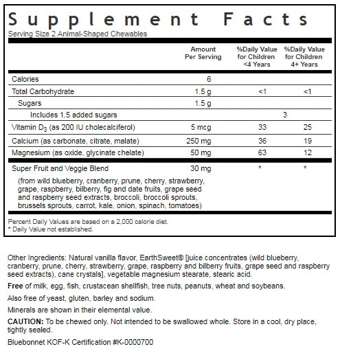 SUPER EARTH RAINFOREST ANIMALZ CALCIUM MAGNESIUM VITAMIN D3 ANIMAL-SHAPED, 90 CHEWS
