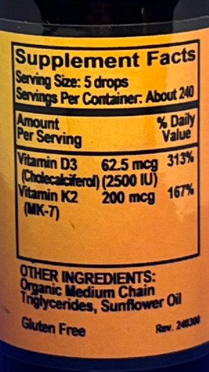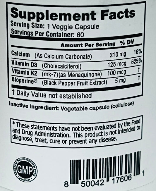 Vitamin D3 plus K2 125 mcg and 100 mcg, vcaps
