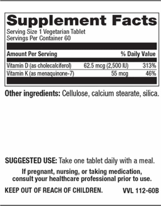 Vitamins D3 & K2, 60 vtabs (item 112)