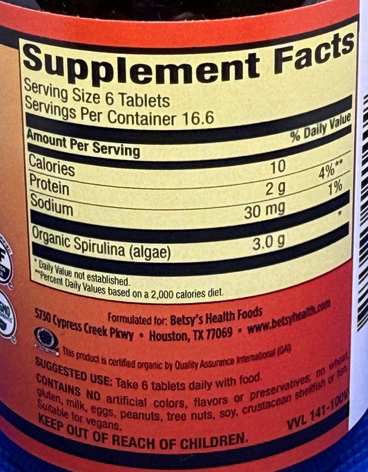 100% Organic Spirulina 500 mg, 100 vtab (item 141)