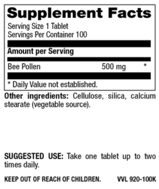 Bee Pollen 500 mg, 100 vtab (item 920)