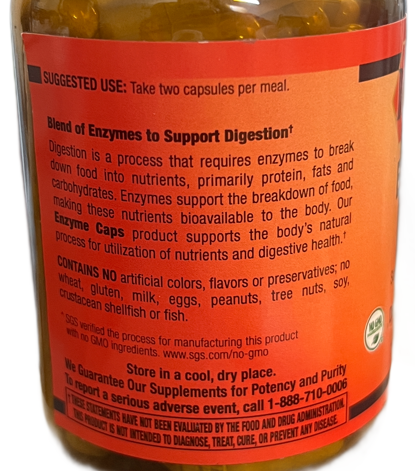 Suggested Use: Take two capsules per meal. Store in a cool, dry place.